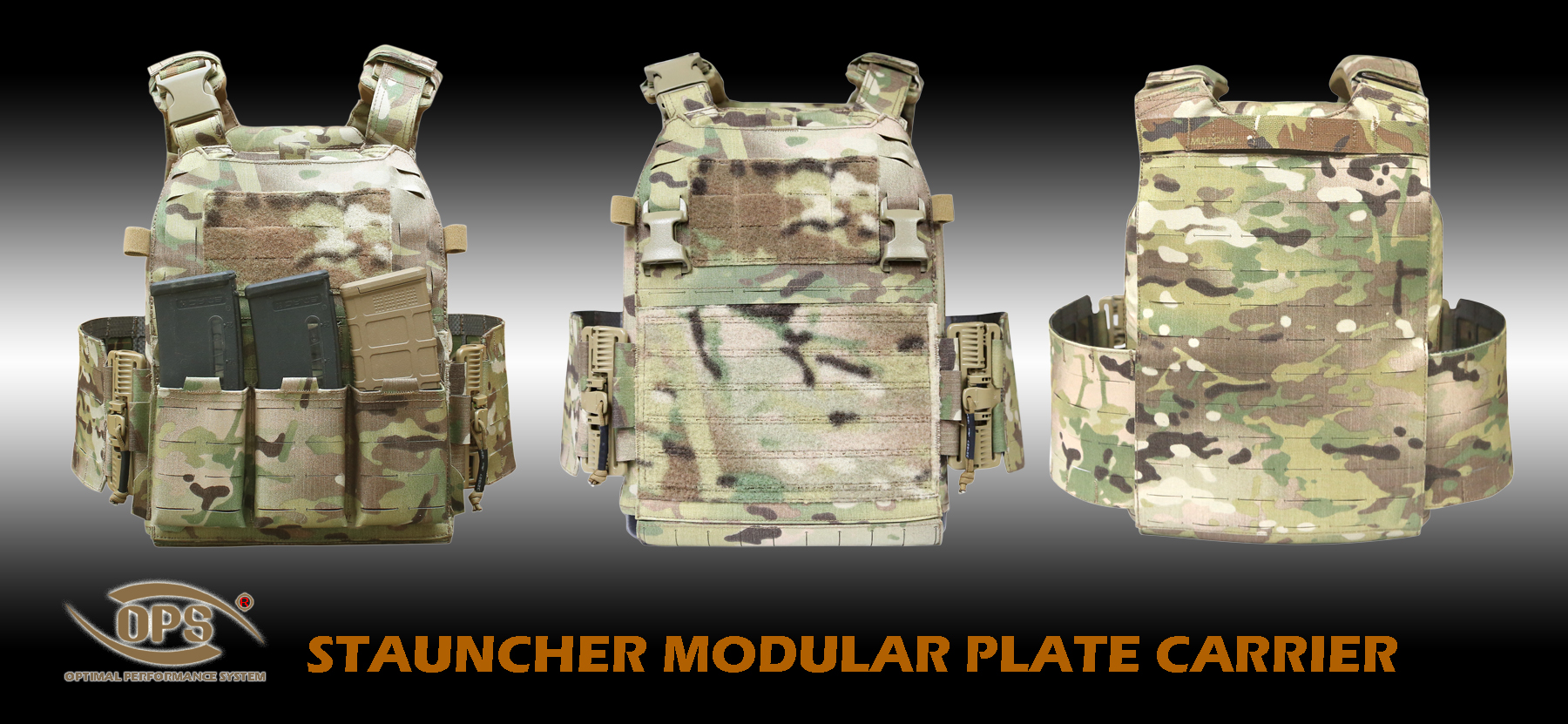The Stauncher Plate carrier comes standard with a three-row cummerbund, but it can also be used with a two-row low-profile cummerbund (sold separately).